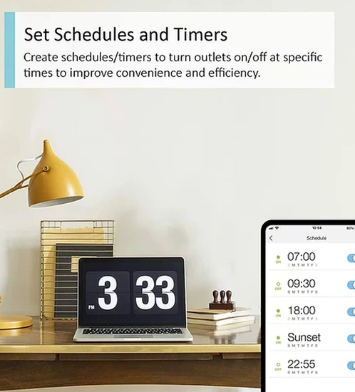 -Set Schedules & Timers – Create schedules/timers to turn outlets on or off at specific times to improve convenience and efficiency, and cut down on power consumption.